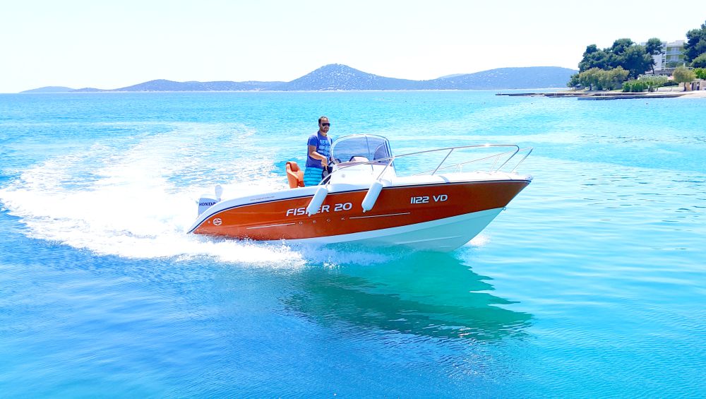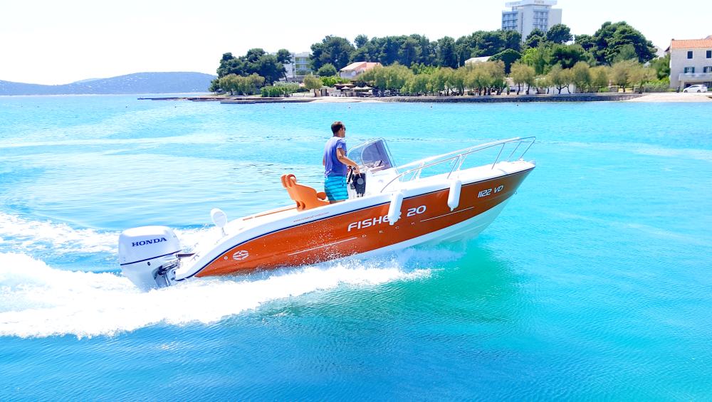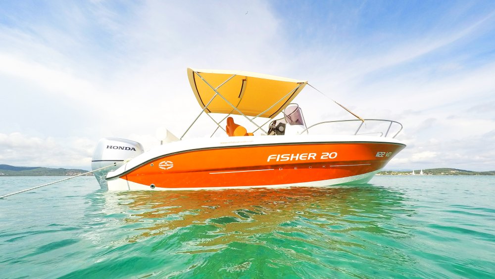 • MF Primus Marine Fisher 20 Deck • Honda Marine fourstroke 150 HP • 6,00 m dužina, 2,50 m širina • 45 mph maksimalna brzina • Registriran za 8 osoba • Kabina sa dva ležaja • Bimini tenda, inox stepenice • Garmin 7-inčna gps navigacija • Tuš sa spremnikom 60 litara • Usb/Bluetooth/SD/Aux/Radio Dnevni najam: već od 190,00 € Tjedni najam : već od 1150,00 €